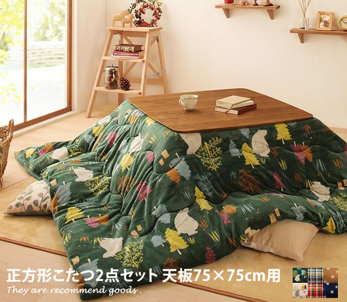 【天板75cm×75cm用】こたつ布団2点セット 正方形 薄掛け 掛け布団 敷布団 マイクロファイバー加工 フランネル 丸洗いOK フリース しろくま 星 安心品質 オールシーズン チェック おしゃれ家具 おしゃれ 北欧 モダン