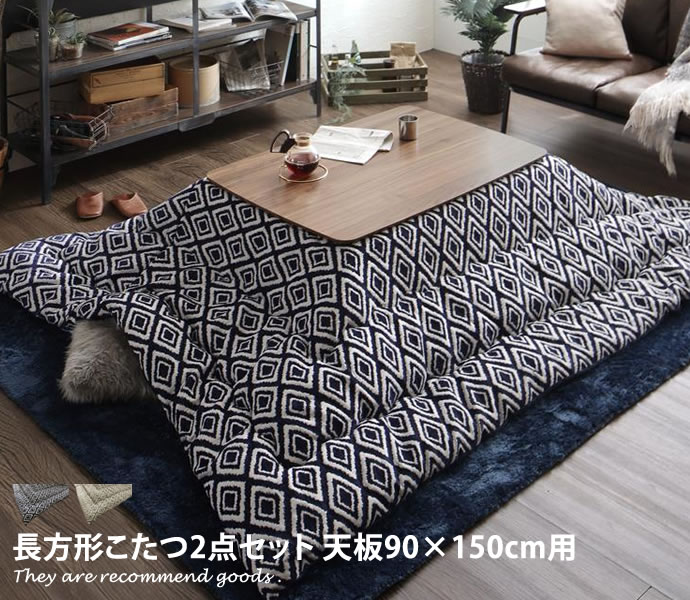 【天板90cm×150cm用】こたつ布団2点セット 幾何柄 掛け布団 敷布団 ヴィンテージ風 カーキ コンパクト スリム ネイビー オールシーズン ホットカーペット対応 ジャガード織り マイクロファイバー おしゃれ家具 おしゃれ 北欧 モダン
