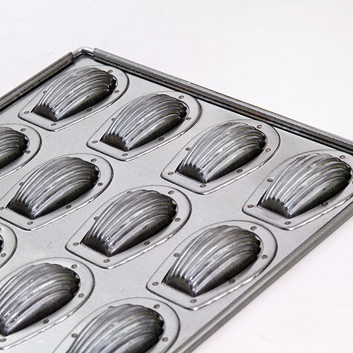 シリコン加工のついた型離れしやすいマドレーヌ天板です。