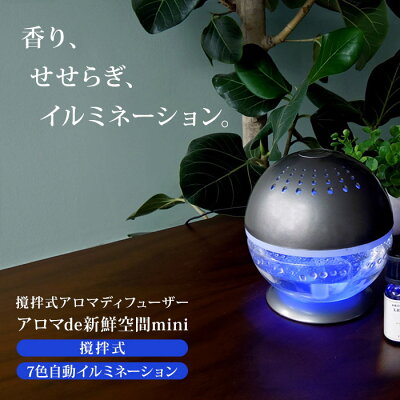 アロマディフューザー 超音波式 アロマde新鮮空間mini 小型 卓上 オフィス 会社 ギフト プレゼント 空気清浄機 かわいい コンパクト LED レモンの香りのアロマオイル付き♪
