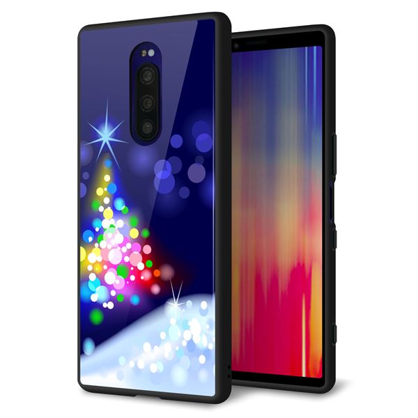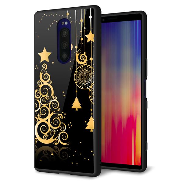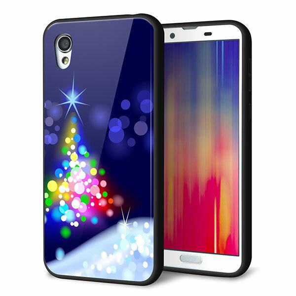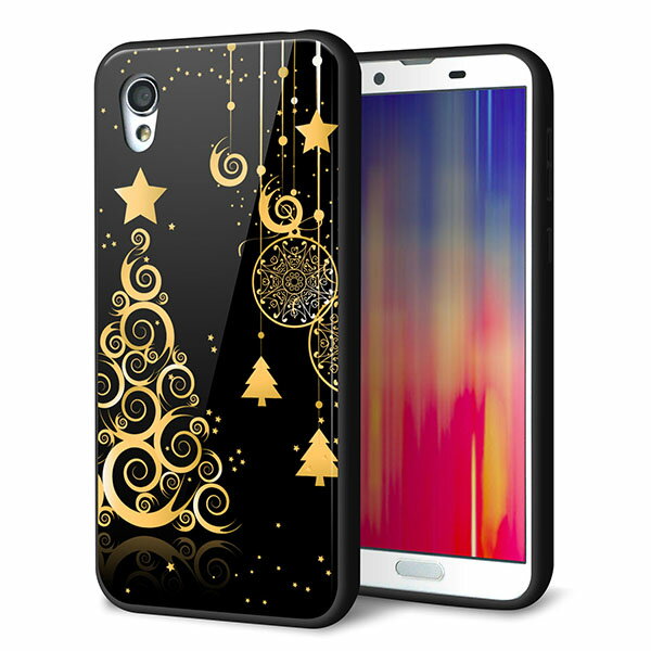 docomo au SoftBank iPhone8 アイフォン 8 ケース カバー 背面 ガラス TPU デザイン 【 YJ347 クリスマスツリー 】 印刷 光沢 メール便送料無料