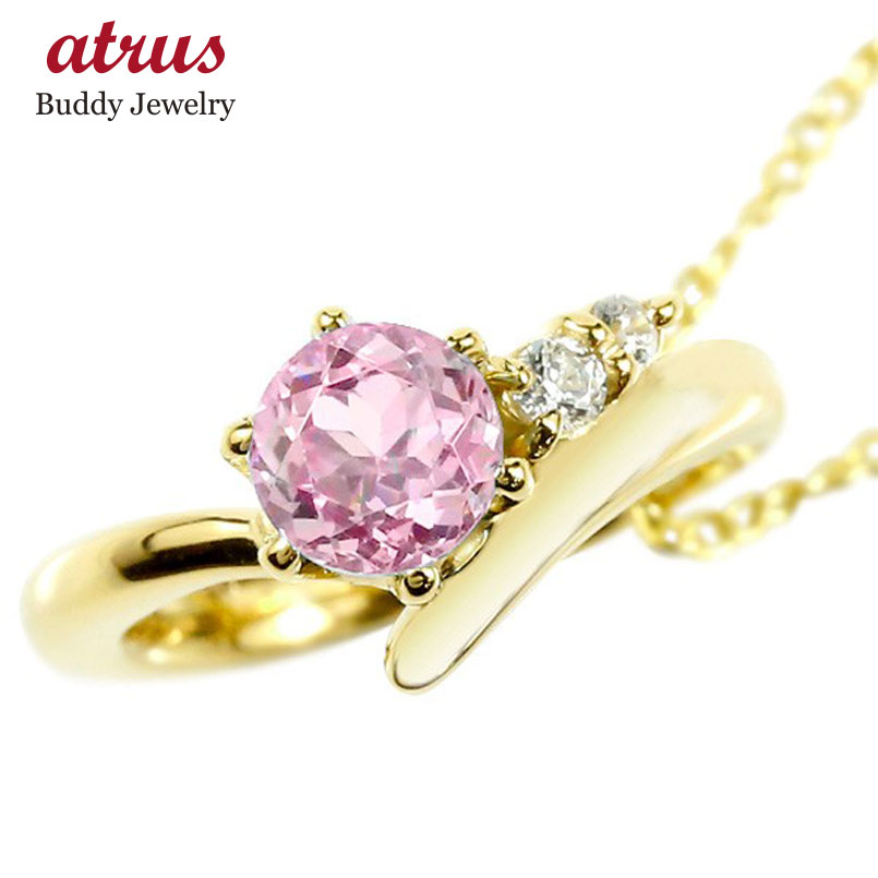 ネックレス ピンクトルマリン ダイヤモンド ベビーリング イエローゴールドk10 チェーン ネックレス レディース シンプル ダイヤ 10金 プレゼント 10月誕生石 妻 嫁 奥さん 女性 彼女 娘 母 祖母 パートナー