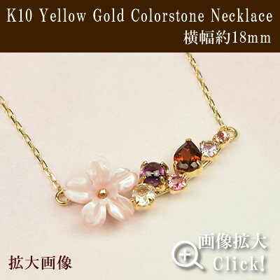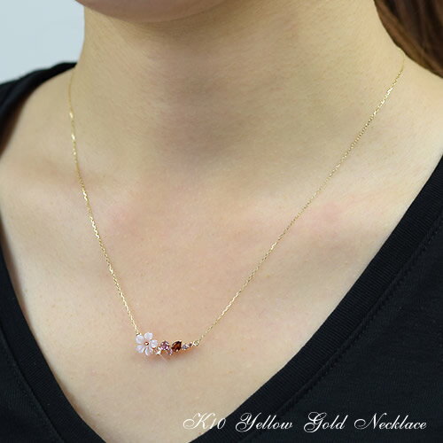 天然石 フラワーモチーフ ネックレス 40cm 10金 イエローゴールド ピンクシェル ピンクトルマリン ローズクォーツ ガーネット アメジスト 10k K10 送料無料RCP レディース 誕生日プレゼント 女性用 あす楽 金属アレルギー 安心 アクセサリー コンビニ受取対応商品