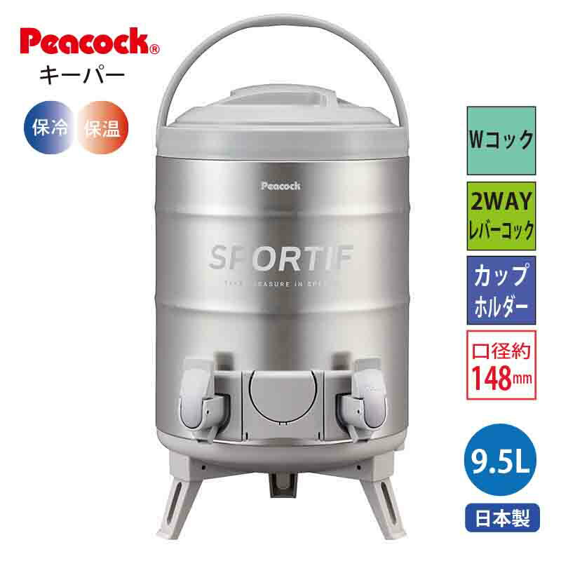 「ピーコック魔法瓶工業」ダブルコック ステンレスキーパー 9.5L(保温保冷可)INS-W100H 日本製