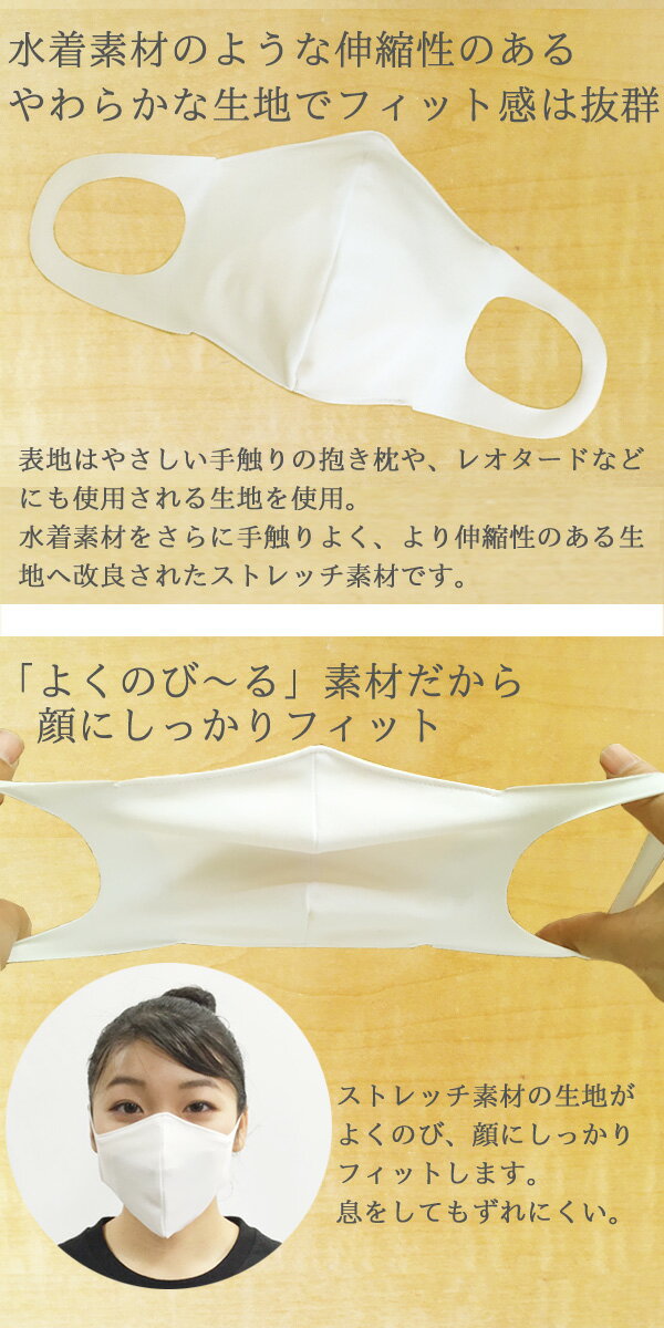 在庫あり【★メール便 配送 (日時指定・代引不可)】水着素材 洗える立体 布マスク(3枚セット)【日本製】防塵/伸縮性/フィット/飛沫/保湿/風邪/予防/水着生地/