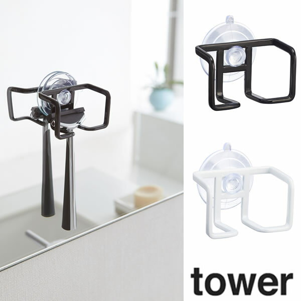 タワー 吸盤シェーバーホルダーシェーバーホルダー 吸盤 鏡 髭剃り 置き お風呂場 浴室 バスルーム 収納 バス用品 生活雑貨 生活用品 おしゃれ ホワイト02967 ブラック02968
